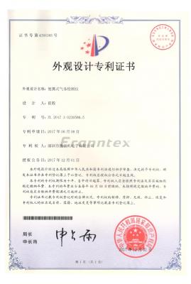 手提式PTM600氣體分析儀外觀設(shè)計(jì)專利證書