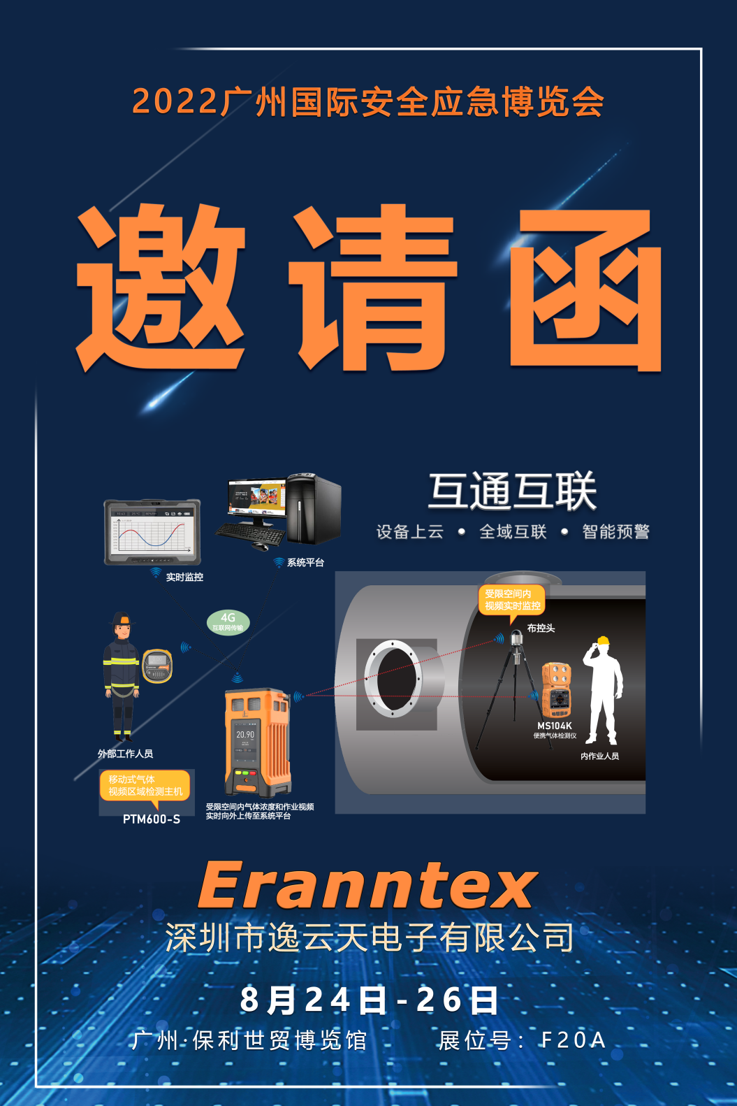 此次展會,逸云天除了為到訪參展觀眾帶來詳盡的技術方案講解之外,還有專業的氣體檢測儀產品及其他技術成果展出!逸云天展位:F20A,8月24日,與您相聚廣州保利世貿博覽館,與您不見不散。