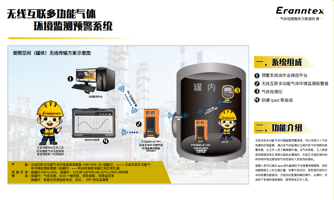 其中,逸云天的無線互聯受限空間監測氣體預警系統技術方案為油罐清罐作業過程提供有害、易燃易爆氣體在線檢測,可以實時監測可燃氣體,氧氣及有毒有害氣體濃度。而無線互聯受限空間監測氣體預警系統技術方案,為隧道、涵洞、儲物間等受限空間作業提供有毒有害、易燃易爆氣體在線檢測。