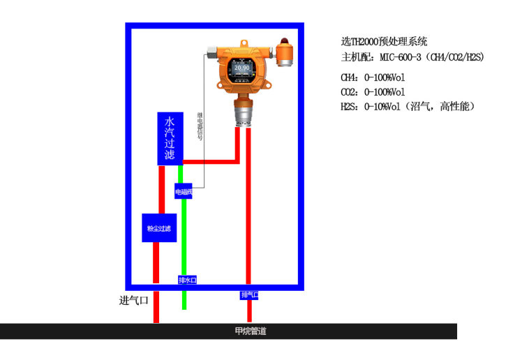 整個(gè)智慧社區(qū)沼氣在線監(jiān)測(cè)系統(tǒng)由供電單元、采樣單元、樣氣處理單元、傳感器檢測(cè)單元、數(shù)據(jù)處理單元、顯示單元和傳輸單位組成。供電單元負(fù)責(zé)為整個(gè)設(shè)備提供電能;采樣單元通過(guò)采樣泵將沼氣樣品抽入到傳感器檢測(cè)單元進(jìn)行檢測(cè)和分析;樣氣處理單元負(fù)責(zé)將沼氣樣品中含有的水分和灰塵過(guò)濾掉;傳感器檢測(cè)單元負(fù)責(zé)對(duì)沼氣樣品中不同氣味成分的識(shí)別分析;數(shù)據(jù)處理單元通過(guò)各傳感器的檢測(cè)數(shù)據(jù)后,利于逸云天獨(dú)有的大數(shù)據(jù)沼氣模型進(jìn)行分析計(jì)算,得出精確的內(nèi)部工程數(shù)據(jù);顯示單元將的內(nèi)部的工程數(shù)據(jù)以淺顯易懂的方式呈現(xiàn)出來(lái);傳輸單位通過(guò)有線或無(wú)線將最終數(shù)據(jù)遠(yuǎn)程傳輸?shù)江h(huán)保局、控制室和云平臺(tái)等。