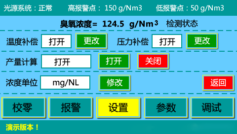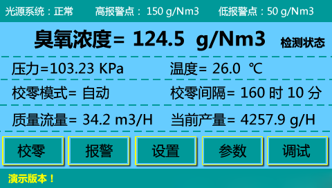 臭氧分析儀帶有觸摸屏操作界面,實時顯示臭氧氣體的濃度,帶有壓力和溫度補償及顯示,可設置自動校零時間和手動校零模式。高濃度(g/Nm3)量程帶有流量輸入功能,可實時顯示臭氧發生器的產量。帶有兩組繼電器信號輸出,用戶可自由選擇高報警點和低報警點信號輸出連接。核心部件采用紫外長壽命光源系統,采用高透光率石英片,保證零點的穩定性,防止零點漂移影響檢測濃度的準確性。根據國外光池技術設計的耐壓力,耐沖擊的獨立光池結構,校零操作時氣體流量、壓力、流速保持不變,防止氣流沖擊對校零產生影響,無需關閉臭氧進氣可完成校零操作,保證設備可以每天24小時連續運行。